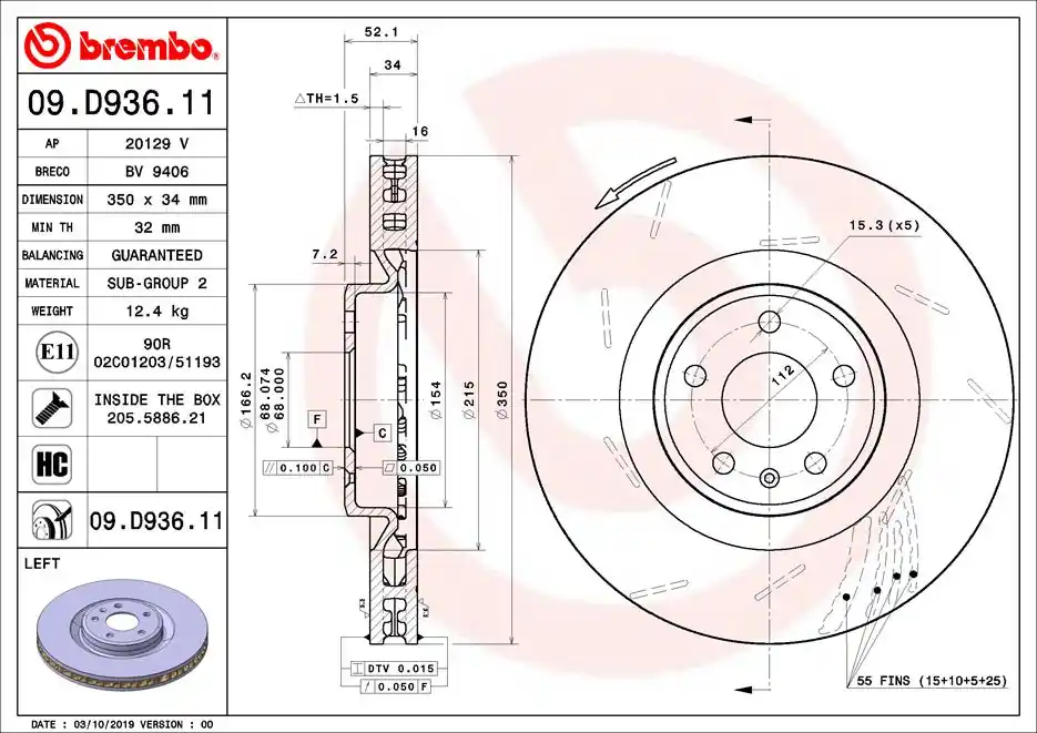 Minimale dikte [mm]: 32 Remschijftype: Gekerft, interne ventilatie Remschijfdikte [mm]: 34