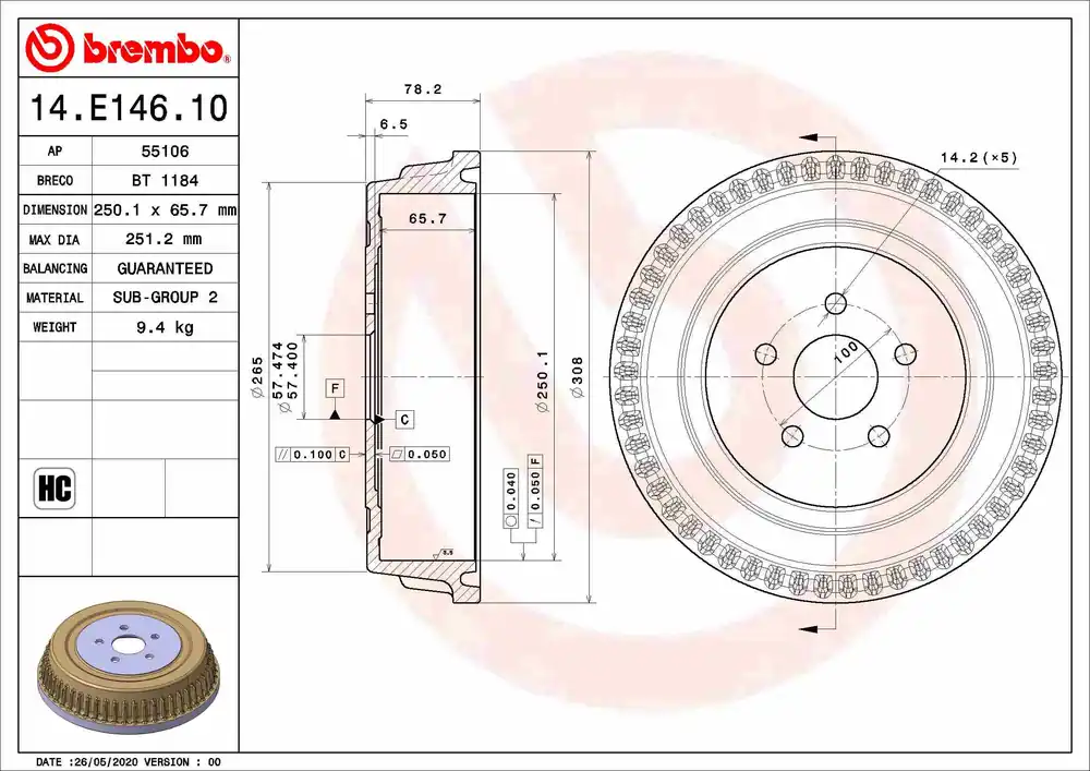 Remtrommel Brembo 14.E146.10 Handgemaakt